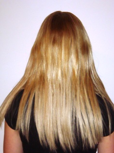 This client lives in Portland Oregon. We performed a 'Paul Brown' hair straightening system (because her hair had kinky curls). This is approximately a 4hr. procedure which involves using a flat iron on the hair to create the sleekest permanent style to the hair and adds incredible shine. Then after 72 hours we added the hair extensions.