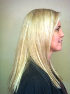 My hair type: Thin and fine, shoulder length, platinum blonde