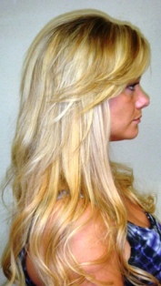 I truly cannot say enough good things about Kim and her expertise in hair extensions! I have wanted extensions for years and when I finally did it, I promised myself that in 10 weeks, when I was set to have them maintained, I would do a review so that newbies to extensions like me, could have the cold hard facts. So here there are! Also, I took pics from beginning to end but you have to click on the pics to read the captions (week 2, week 6, etc, etc.)